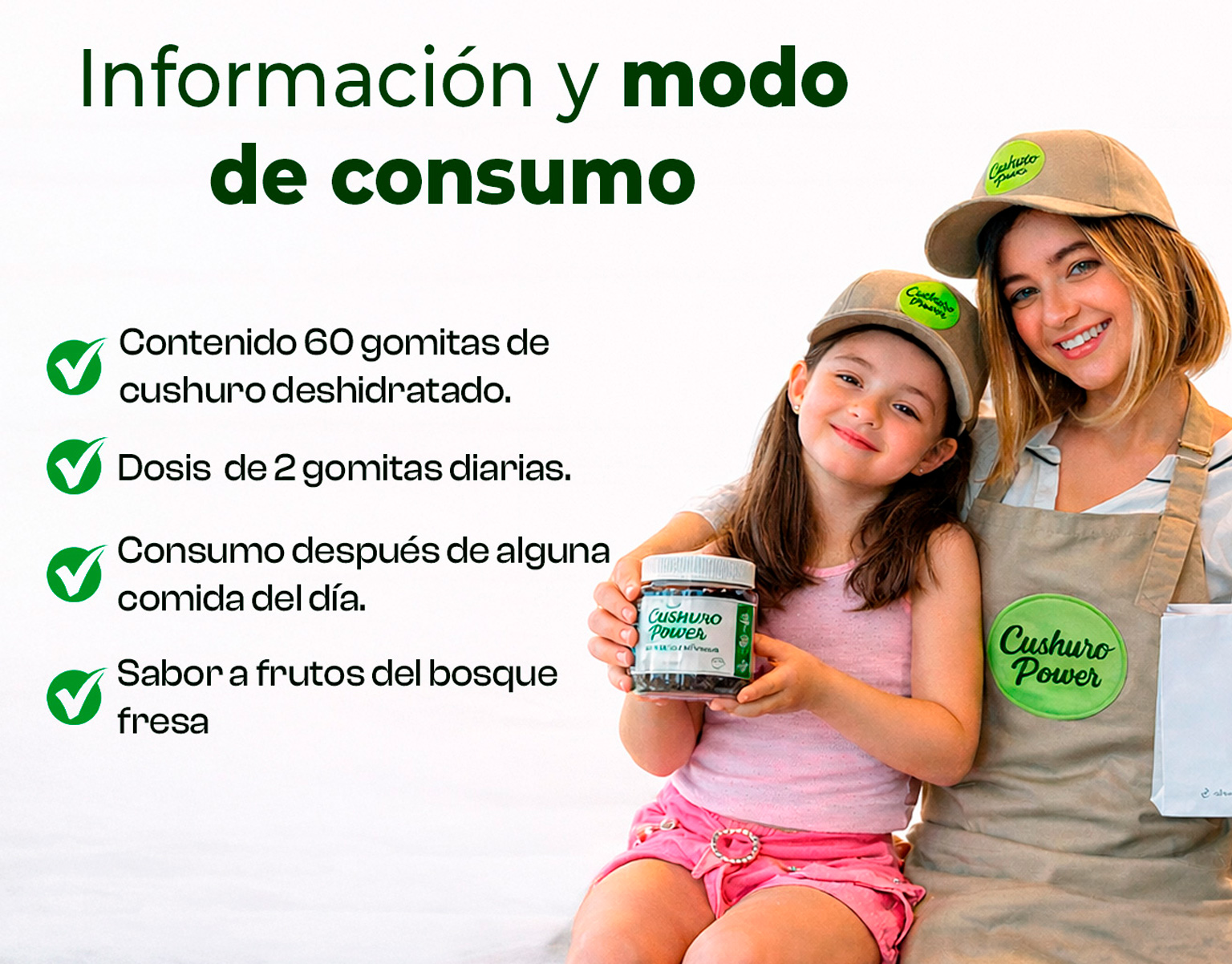 La dosis recomendada es de 2 gomitas diarias. Se sugiere consumirlas después de cualquier comida del día para asegurar una mejor absorción de sus nutrientes.