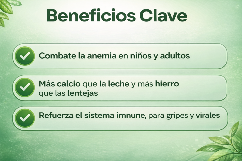 Sí. Es ideal para niños en etapa de crecimiento, ya que ayuda a prevenir y combatir la anemia, fortalecer sus defensas y aportar el calcio necesario para sus huesos de forma natural y rica.